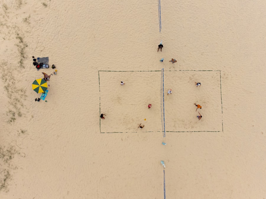Volleyball is a team sport in which two teams of six players each are separated by a net. The objective is to score points by grounding the ball on the opposing team’s court.